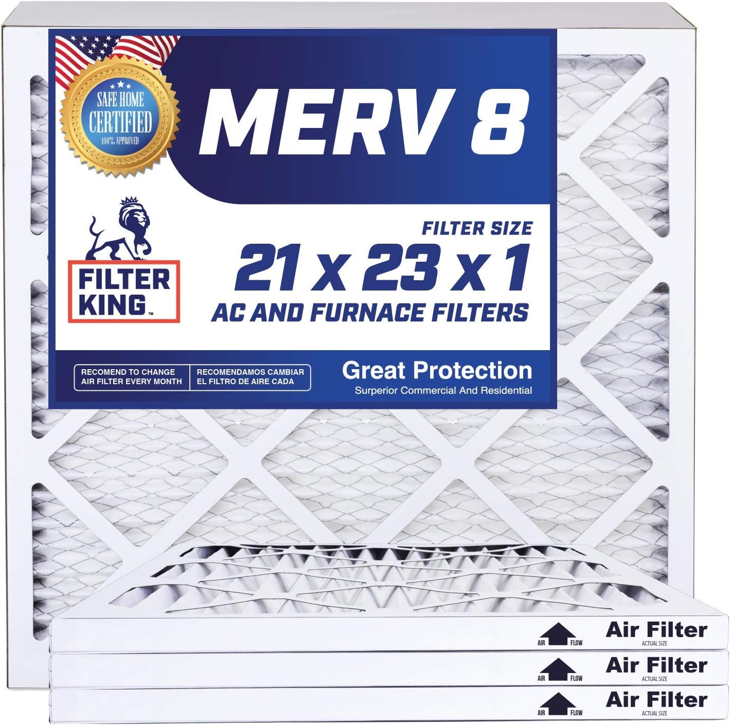 Filter King 21x23x1 Air Filters 4 Pack Merv 8 Hvac Pleated Ac Furnace Filters Increases Air Quality Amazon Com