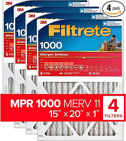 Filtrete 15x20x1 Ac Furnace Air Filter Mpr 1000 Micro Allergen Defense 4 Pack Exact Dimensions 14 81 X 19 81 X 0 81 Replacement Furnace Filters Amazon Com